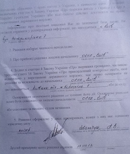 "13 березня прикордонна служба вчергове відмовила мені у виїзді за кордон", - розповів Власенко.