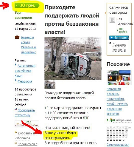 "13 березня на деяких інформаційних порталах міста невідомими особами були розміщені оголошення про грошову винагороду за участь у мітингу. Повідомляємо, що така інформація є неправдивою і має за мету дискредитувати дії протестувальників", - заявили у організації.