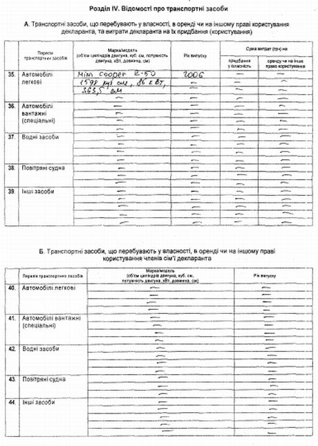 При цьому Чепак володіє автомобілем Mini Cooper R50 2006 року випуску.
