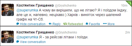 "А чому ви вирішили, що не літаю? Я і поїздом їжджу, але це ж, напевно, нецікаво:) Харків - виняток через шалений графік на четвер-суботу".