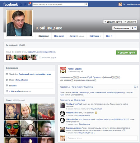 Як відомо, по обіді у четвер у Facebook з'явився акаунт начебто Юрія Луценка.
