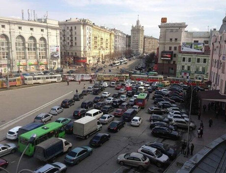 Також, як "Українській правді" повідомив мешканець Харкова, поряд із майданом Руднєва по проспекту Московському стоїть колона тролейбусів, які перегородили вхід на площу з боку проспекту. "З боків наставлено маршрутки", - додав співрозмовник.