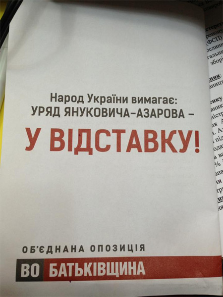 В залі Верховної Ради заборонено показувати слайди опозиції з написом Азарова у відставку.