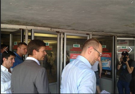 Лідер фракції "Батьківщина" Арсеній Яценюк особисто роздавав листівки з запрошенням на акцію опозиції на 18 травня.