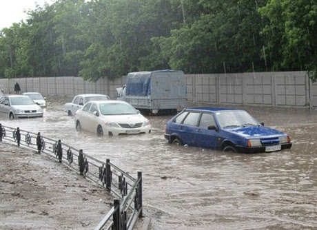 Так, на початку вулиці Клочківській, яка знаходиться в низині і куди потоком сходить вода, автомобілі і навіть автобуси буквально плавали.