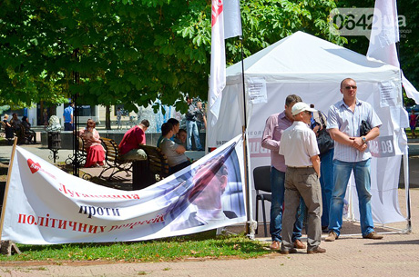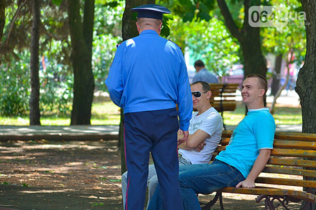 У Луганську 20 червня міліція попросила відпочиваючих на лавочках у сквері навпроти Луганської облдержадміністрації, де відбулося засідання Ради регіонів під головуванням Президента Віктора Януковича, звільнити зону відпочинку, пише "0642".