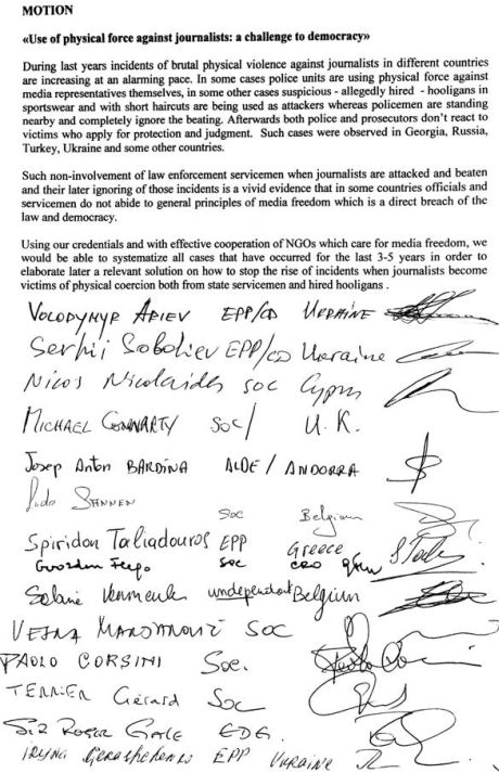 Депутати від Партії регіонів відмовилися поставити підписи під пропозиціями до резолюції ПАРЄ "Застосування сили проти журналістів: виклик для демократії".