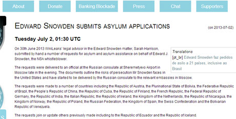 Крім того, Сноуден на сайті Wikileaks заявив, що США намагаються натиснути на ці країни, щоб вони відмовили йому в наданні притулку.