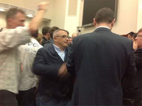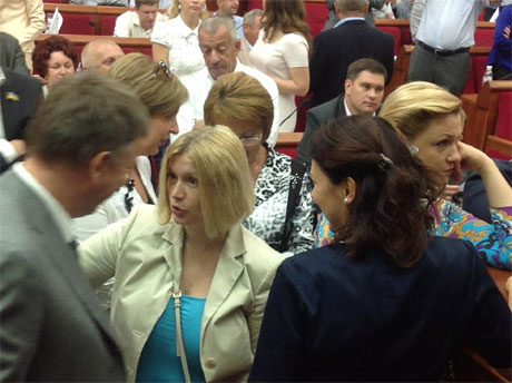 Зокрема в залі і Арсеній Яценюк, якому при штурмі Київради зламали окуляри.