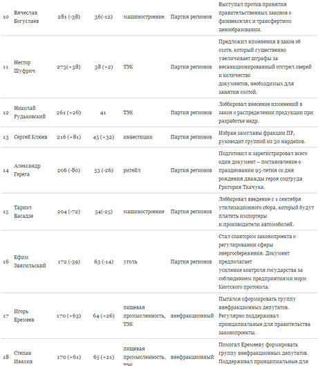 З 23 учасників рейтингу тільки п'ятеро позафракційні депутати: Петро Порошенко, Костянтин Жеваго, Ігор Єремеєв, Степан Івахів і Ігор Палиця.