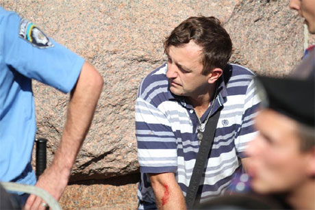 | Едуард Леонов після того, як його побив Беркут Фото прес-служби "Свободи" |