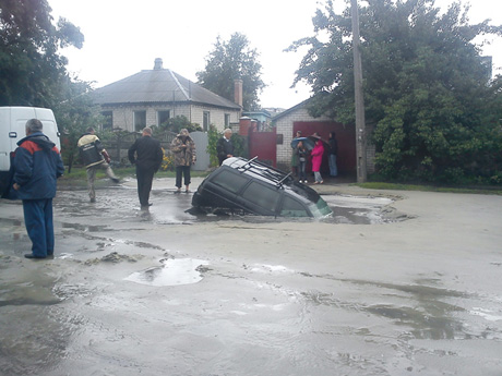На території Крюківського району у Кременчуці (Полтавська обл.) автомобіль "Лада 111" під час руху провалився під асфальтне покриття у яму, яка виникла під час прориву каналізації.