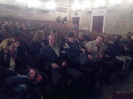 Кожен з них мав на собі роздрукований на звичайному принтері бейдж з написом "Преса". Коли прибули міліціонери, щоб вивести цих людей із зали, хтось кинув димові шашки.