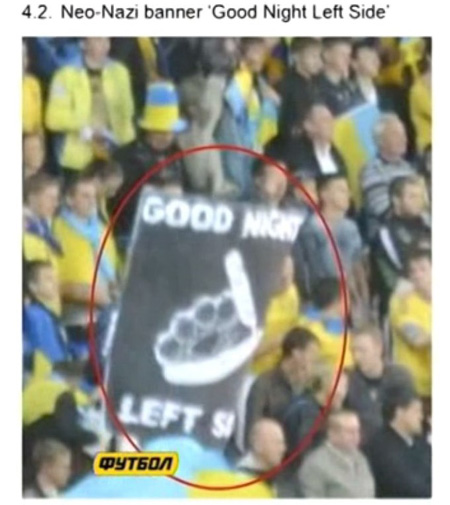 | Банер "Good Night Left Side" (побажання "доброї ночі" (на тому світі) "лівим" від "ультраправих") |