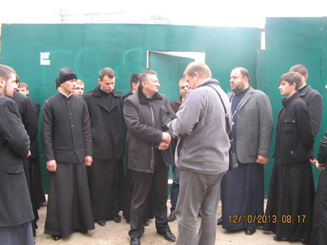 До території забудови у Десятинному провулку зранку 12 жовтня забудовник, окрім "тітушок", привів семінарський хор.