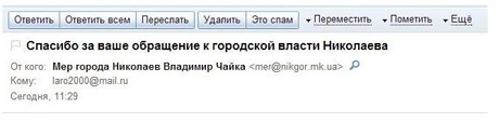 Екс-міський голова Миколаєва Володимир Чайка, який помер 2 березня 2013 року, досі "відповідає" на запити громадян.