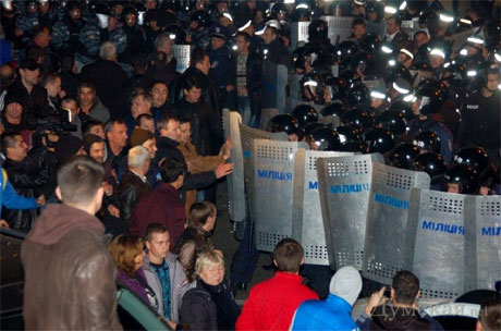 МВС повідомляє, що під час сутичок в Одесі між прихильниками затриманого Ігоря Маркова та Беркутом постраждали кілька правоохоронців.