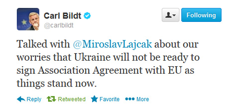 Міністри закордонних справ Швеції та Словаччини Карл Більдт та Мирослав Лайчак стурбовані тим, що Україна не буде готова до підписання асоціації з ЄС, якщо ситуація в країні не зміниться.