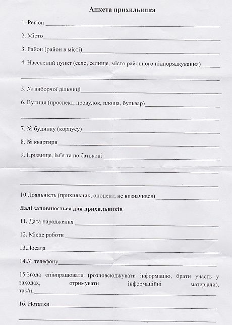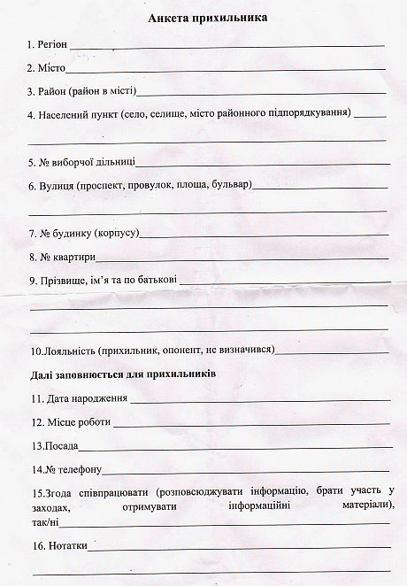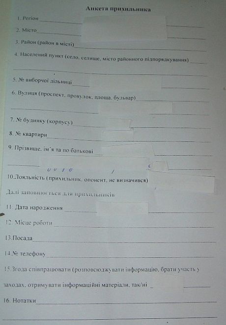 Для цього їм видали пачку "анкет прихильників" Партії регіонів.