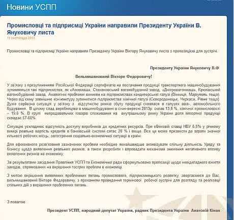 Керівники Федерації профспілок Юрій Кулик та Українського союзу промисловців і підприємців Анатолій Кінах просять президента Віктора Януковича про термінову зустріч.
