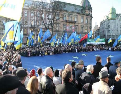 У центрі Львова відбулося віче на підтримку євроінтеграції України.