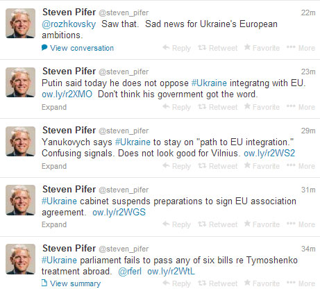 У свою чергу екс-посол США Стівен Пайфер назвав таке рішення уряду "сумною новиною для європейських амбіцій України" .