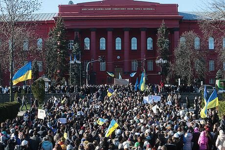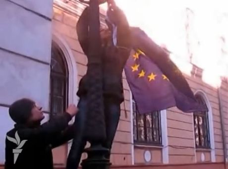 А у Одесі близько трьох десятків студентів зібралися біля головного корпусу Одеського національного університету і підняли прапор Євросоюзу, повідомляє "Радіо Свобода".