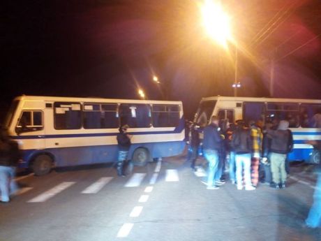 За словами очевидців, 4 автобуси спецпідрозділу "Беркут" вишикувалися перед автомобілістами, а також шлях перегородив кордон "беркутівців".