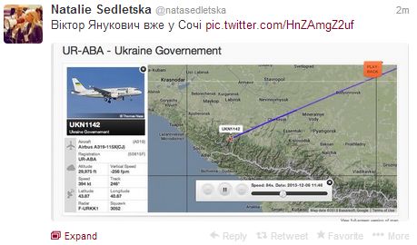 Вона опублікувала дані про політ президентського борту Airbus A319.