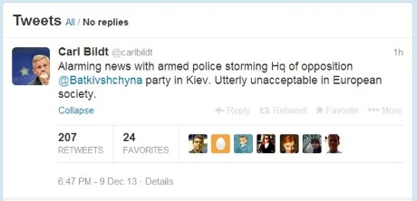 Його литовський колега Лінус Лінкявічус висловив схожу думку: "Штурми штабквартири опозиції та офісів медіа неприйнятні і посилають хвилюючі сигнали щодо майбутніх подій на Евромайдані".