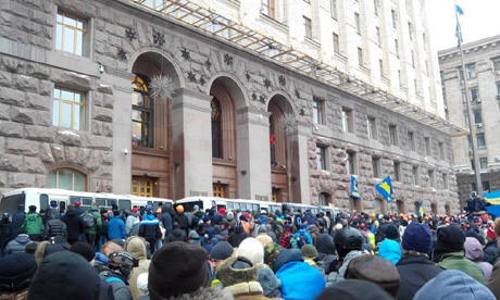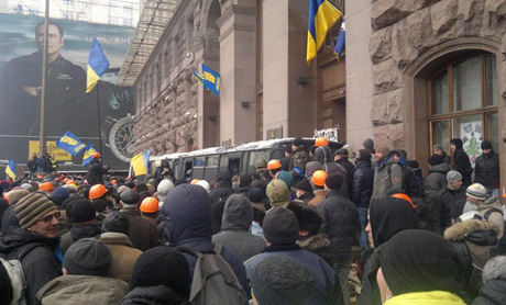 Протестувальники частково розблокували вхід у будівлю столичної мерії після від'їзду автобусів з "беркутівцями".