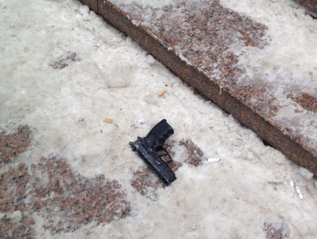 За інформацією Громадського ТБ, провокатор викинув біля будівлі КМДА пістолет, люди оточили це місце і викликали слідчих.