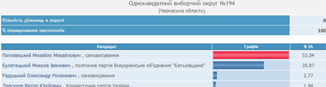 ОВК 194 обробила 100% апротоколів, згідно з якими перемогу одержав співочий ректор Київського університету культури Михайло Поплавський.
