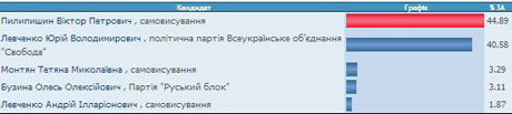 Цікаво, що "клон" кандидата від опозиції Левченко Андрій набрав аж 1,87% (1451 голосів).
