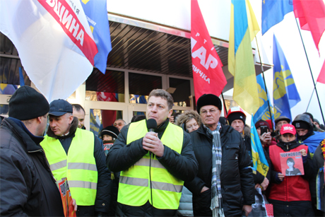 | Депутати виступають перед мітингарями |