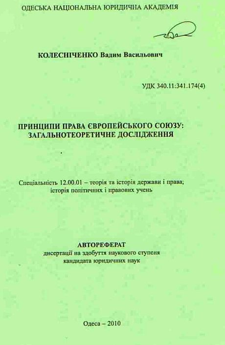 Депутат Партії регіонів Вадим Колесніченко писав дисертацію на тему "Принципи права Євросоюзу: загальнотеоретичне дослідження".