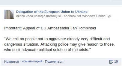В ЄС закликали протестувальників не загострювати ситуацію