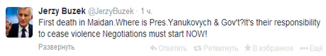 "Перша смерть на Майдані. Де президент Янукович та уряд?" – питає Бузек.