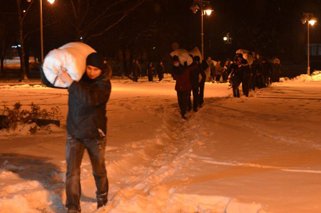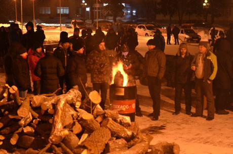 Під стінами рівненської ОДА активісти укріпили підходи до будівлі сотнями мішків зі снігом та шинами.