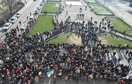 Понад тисячу учасників мітингу вимагали від влади скликати позачергову сесію та висловити спільну позицію міської влади щодо ситуації в країні.