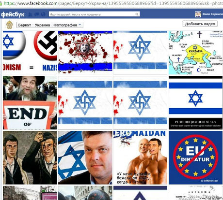"Євреї - поплічники нацистів, євреї на службі вермахту... євреї - колаборанти, сіоністи - посіпаки Гітлера, нацистсько- сіоністський герб" та інші заголовки статей наповнюють сторінку українського "Беркута" у соціальній мережі Фейсбук.