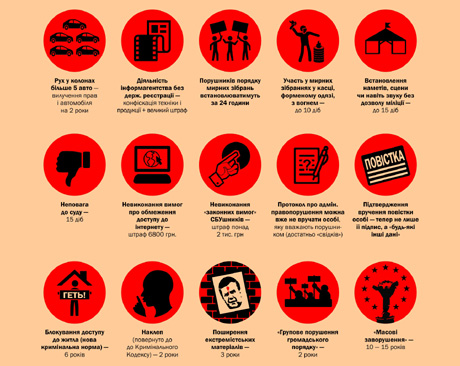 Дані законодавчі акти фактично утискають низку прав громадян і посилюють для влади можливість карати учасників акцій протесту й інших незгодних із діями влади. Серед запроваджених змін – повернення кримінального переслідування за "наклеп" і внесення до Кримінального кодексу статті про "екстремістську діяльність", яка визначається дуже широко.