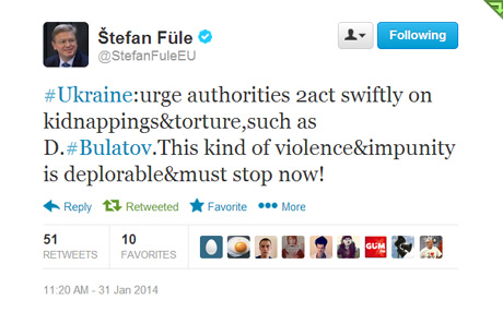 "Закликаю органи влади негайно відреагувати на випадки викрадення та катування людей, як це сталося з Дмитром Булатовим. Такі прояви насилля та безкарності є шокуючими і мають припинитися зараз же!" – закликав єврокомісар з питань політики добросусідства Штефан Фюле у своєму Twitter.