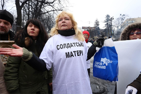 Близько 20 жінок у футболках "солдатські матері" прийшли на Грушевського з боку міліції і прибрали хрести, які поставили мітингувальники.