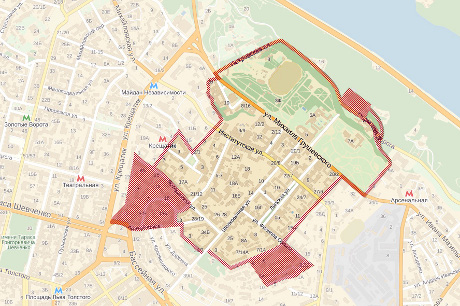 Територія від Бессарабської площі по вулиці Круглоуніверситетській до перехрестя вулиць Лютеранської та Заньковецької;