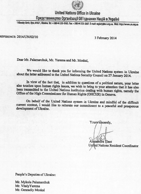 Про це йдеться у листі представництва ООН в Україні, текст якого має Українська правда.