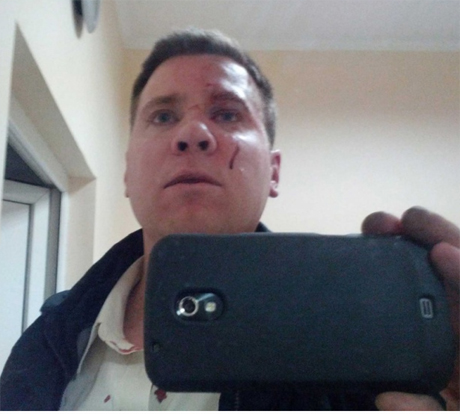 "Я, Джеффрі та ще одна наша колега відпочивали в одному із закладів Сімферополя. Коли ми вийшли покурити, то обговорювали Євромайдан. До нас з компанії, що стояла поряд, підійшов чоловік міцної статури й доволі агресивно поцікавився, чи підтримуємо ми Євромайдан. Я відповів, що так. Далі він почав нас ображати, й врешті напав, завдавши кілька швидких потужних ударів", - зазначив Рибалко.