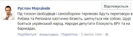 Як розповів депутат-свободівець Руслан Марцінків, у кабінеті голови Ради Володимира Рибака відбувається екстрена нарада регіоналів.