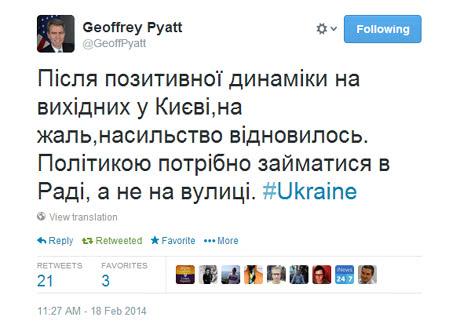 Посол США Джефрі Пайєт закликав українців мирно залагодити конфлікт.