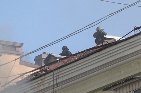На дахах будівель, які знаходяться в урядовому кварталі, знаходяться бійці спецпідрозділів, озброєні рушницями і гранатами.